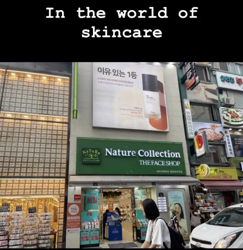 Satu hal lain yang menarik bagi saya adalah menjamurnya produk skincarenya. Kawasan Myeong-dong adalah salah satu tempat di mana orang bisa puas berbelanja produk-produk kecantikan kulit, tentunya khususnya untuk para wanita. Soal skincare ini saya jadi ingat murid-murid perempuan Korea di kelas saya. Mereka itu masih usia ABG (Anak Baru Gede) tapi peralatan skincarenya lengkap, bo! Gadis-gadis Korea ini sangat-sangat-sangat memperhatikan penampilan mereka mulai dari kepala hingga ujung kaki. Ada cerita lucu pernah terjadi di kelas. Ketika itu saya akan mengambil foto semua murid untuk sebuah keperluan sekolah. Saya heran karena ada dua orang yang ijin ke toilet, lamaaa sekali tidak kembali-kembali. Kemudian sambil kesal saya bertanya kepada yang lainnya, “Where are they going? To the toilet this long time?” Seorang murid perempuan menjawab, “They said they will put on make up first.” ”What?” respon saya. Tidak lama kemudian seorang murid laki-laki asal Jepang menyahut sambil tertawa ngikik, “You know…Korean girls…” selorohnya, panjang lebar sih tapi saya tidak mau tulis semuanya di sini, he..he.. soalnya sensitif, berabeh nanti bisa menimbulkan ribut antar negara.