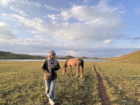 Sore hari ketika langit berubah jingga, pas banget, kamipun tiba di Yurt Camp, tempat rombongan akan menginap malam itu. Tak habis kekagumanku memandangi padang luas bagaikan lanskap tak berujung, sesekali marmot (makhluk lucu berbulu tebal, keluarga tupai tanah) bermunculan dari lubang-lubang berumput seakan ikut menyambut dengan penasaran, dan kuda-kuda merumput di tepi danau yang dikelilingi oleh pegunungan bersalju. Oh, Tuhan! Betapa indah alam ciptaanMu! Gumamku.