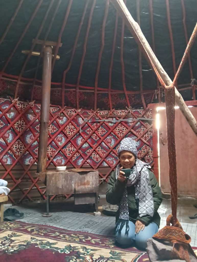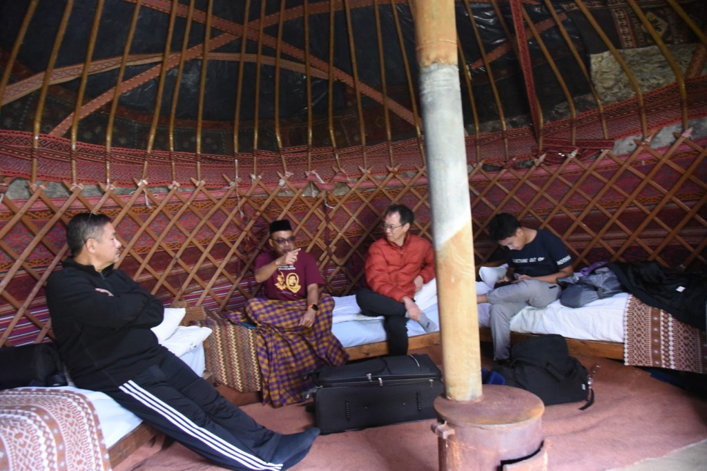 Kemudian, kami dibagi ke dalam beberapa yurt. Setiap yurt rata-rata dihuni oleh tiga hingga lima orang, meskipun ada juga yang hanya berdua, untuk pasangan suami istri. yurt ini berbentuk bundar, dibangun dari rangka kayu yang disusun presisi, lalu dilapisi felt, wol tebal yang berfungsi sebagai insulasi alami. Beberapa yurt juga dilapisi terpal tahan air dan angin kencang untuk menambah perlindungan terhadap cuaca ekstrem. Di dalam setiap yurt ada tungku pemanas untuk menghangatkan badan.