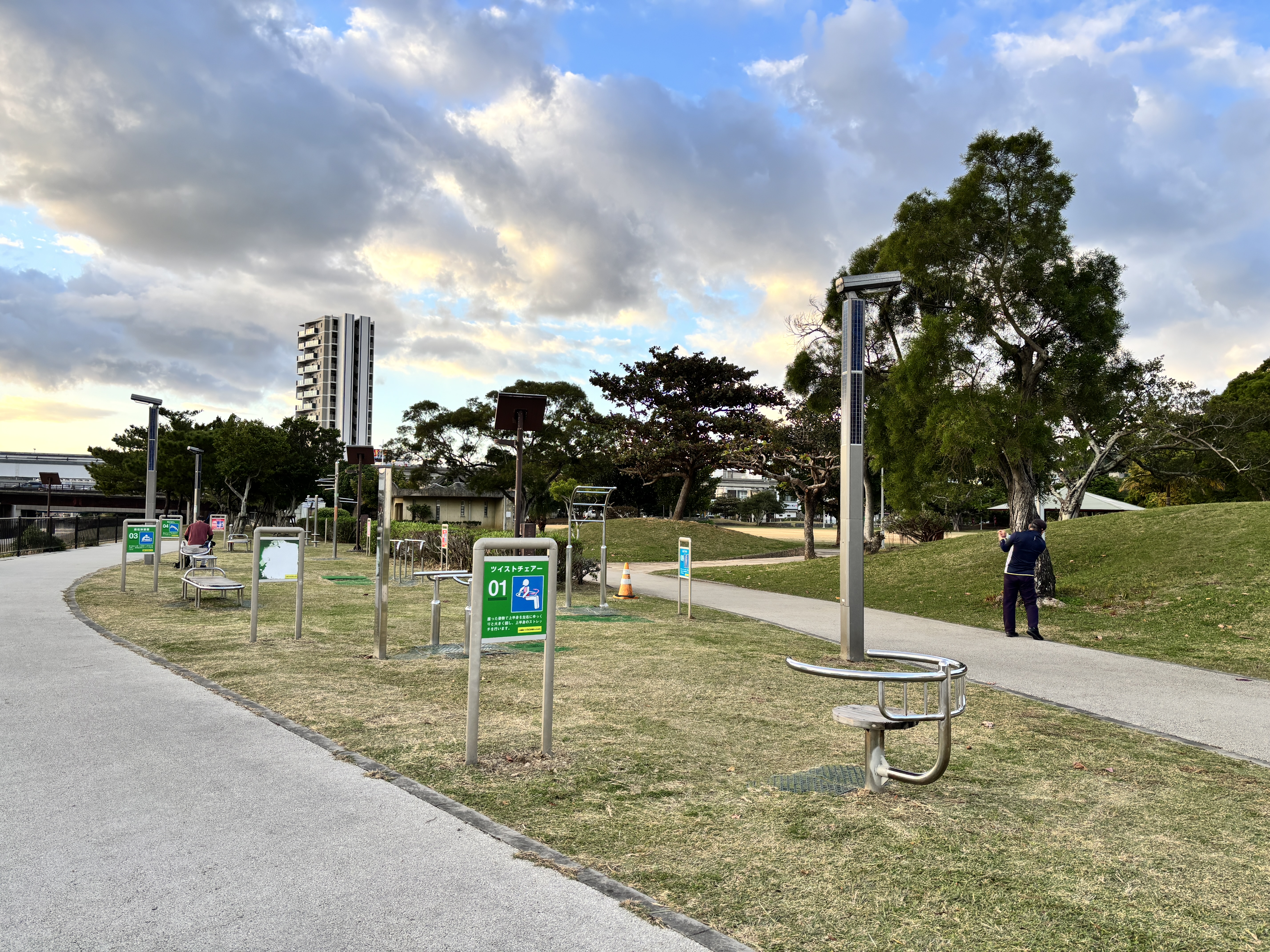 Di ruang-ruang publik, di taman kecil, di lapangan terbuka, hingga tepi pantai, terlihat para lansia yang berolahraga. Di tempat umum itu disediakan peralatan kebugaran yang dipandu mulai dari step 1 hingga 10. Di lapangan terbuka terlihat para lansia bermain groundgolf, olahraga ringan yang sangat populer di sana, mirip bermain golf gitu sih.